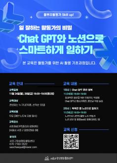 서초구양성평등활동센터에서 실무 역량강화 교육 <일 잘하는 활동가의 비밀 : Chat GPT와 노션으로 스마트하게 일하기> 강의를 진행합니다. AI 활용을 기초부터 ... -